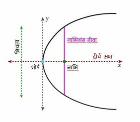 परवलय के नाभिलंब जीवा के अंत को कहा जाता है और नाभिलंब जीवा की लंबाई को कहा जाता है।