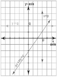 एक चर में रैखिक समीकरण का ग्राफ -अक्ष के समानांतर एक ऊर्ध्वाधर रेखा बनाता है और एक चर में सरल रेखा के समीकरण का ग्राफ -अक्ष के समानांतर एक क्षैतिज रेखा है। दो चर और में रैखिक समीकरण का ग्राफ कुछ ढलान के साथ एक सरल रेखा बनाता है।