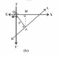 (i) मूल बिंदु से रेखा पर लंब की लंबाई।