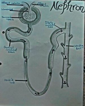 - एकत्रित नलिका (मज्जा में) - वृक्क संग्रहण नलिकाएं वृक्क में लंबी संकीर्ण, सीधी नलिकाएं होती हैं जो नेफ्रॉन से मूत्र को केंद्रित और परिवहन करती हैं। यहां सांद्रित मूत्र उत्पन्न करने के लिए जल का अधिकतम पुनर्अवशोषण होता है।