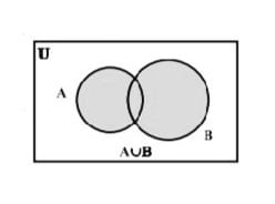 दो समुच्चयों के सम्मिलन को चित्र में दिखाए गए वेन आरेख से प्रदर्शित किया जा सकता है।